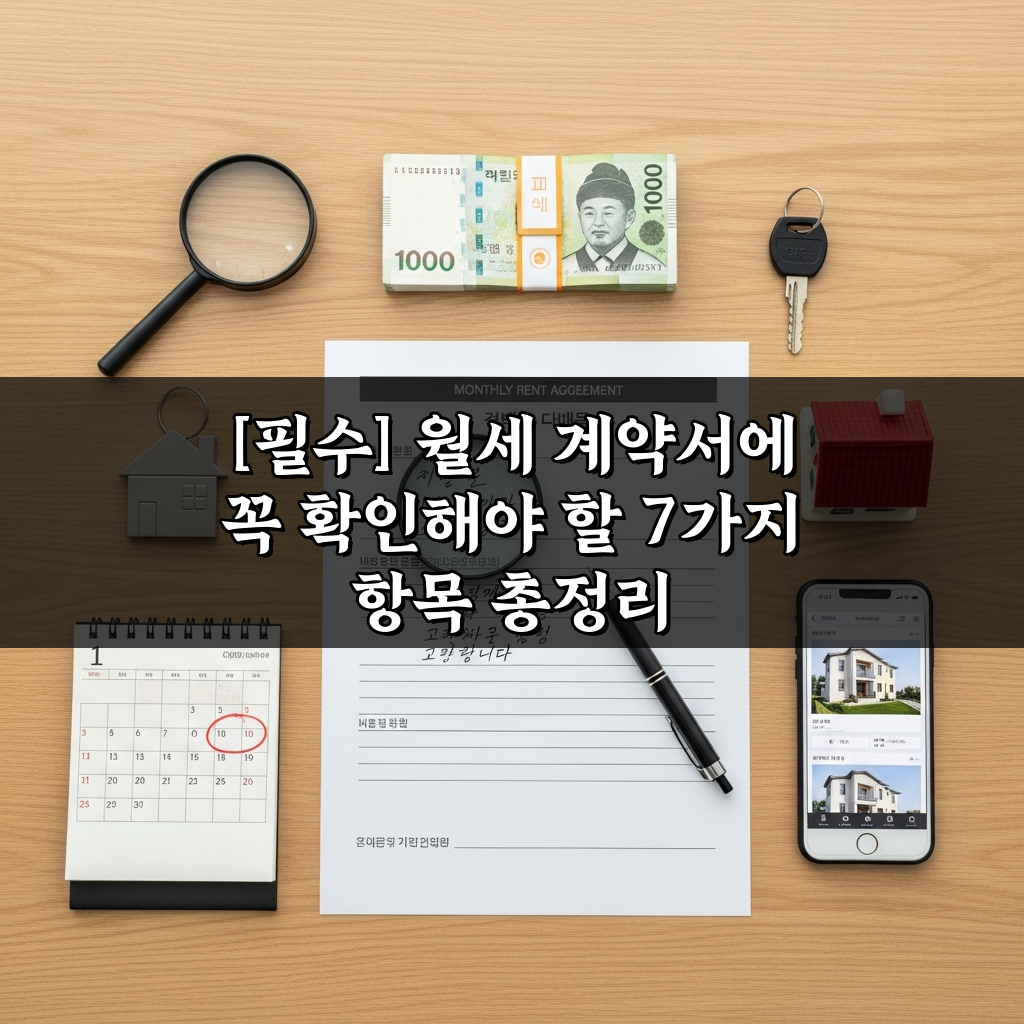월세 계약, 꼼꼼히 확인 안 하면 큰 손해 봅니다. 월세 계약서 작성 전 꼭 알아야 할 7가지 필수 항목을 총정리! 안전한 계약을 위한 핵심 정보를 놓치지 마세요.