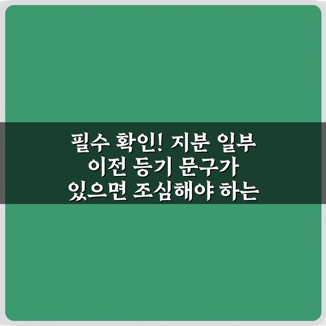 **메타 설명:** 지분 일부 이전 등기 문구가 있는 계약, 무심코 넘기면 큰 위험에 빠집니다. 부동산 매매 시 반드시 확인해야 할 5가지 핵심 주의사항을 알고 소중한 재산을 보호하세요.